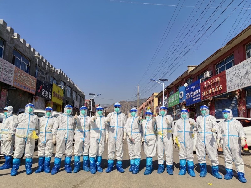 圖為紅山口村下沉隊員在核酸檢測工作結(jié)束后合影