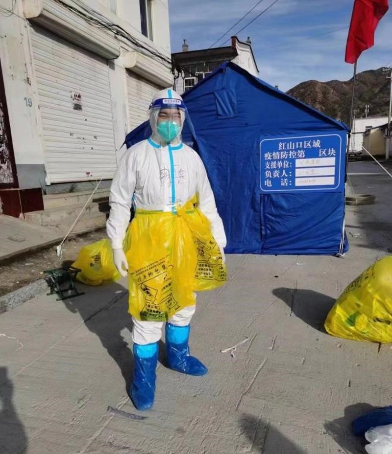 圖為預(yù)備黨員王然在疫情防控一線