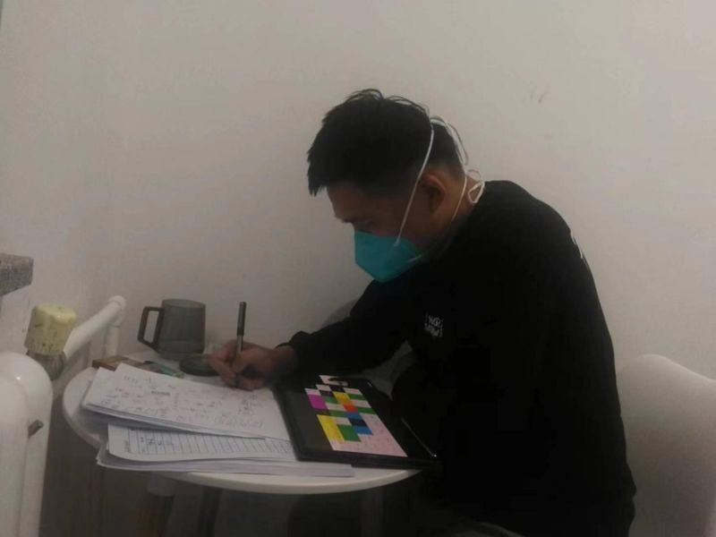 圖為李凱正在做沙爾沁鎮(zhèn)公租房隔離點密接隔離人員的核酸檢測工作計劃